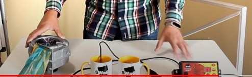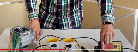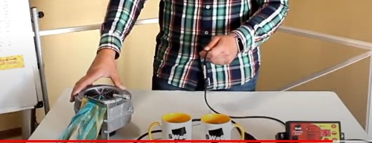 У нас есть турбина, подключённая к блоку управления. Датчик, который считывает температуру теплоносителя в котле. Мы же будем использовать горячую и холодную воду. Теперь давайте включим блок управления. Автоматика нам показывает температуру датчика температуру воздуха в помещении. Зададим необходимую температуру в 60 градусов. При достижении этой температуры котёл перейдет в режим тления. После запуска котла в режим работы, турбина начнёт нагнетать воздух, в сам котёл, пытаясь поднять температуру. Турбина набирает мощность в три этапа и за 5 градусов до необходимой температуры так же плавно и остановится.